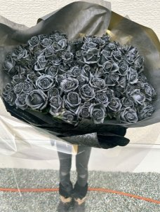 グリッターローズ黒花束100本